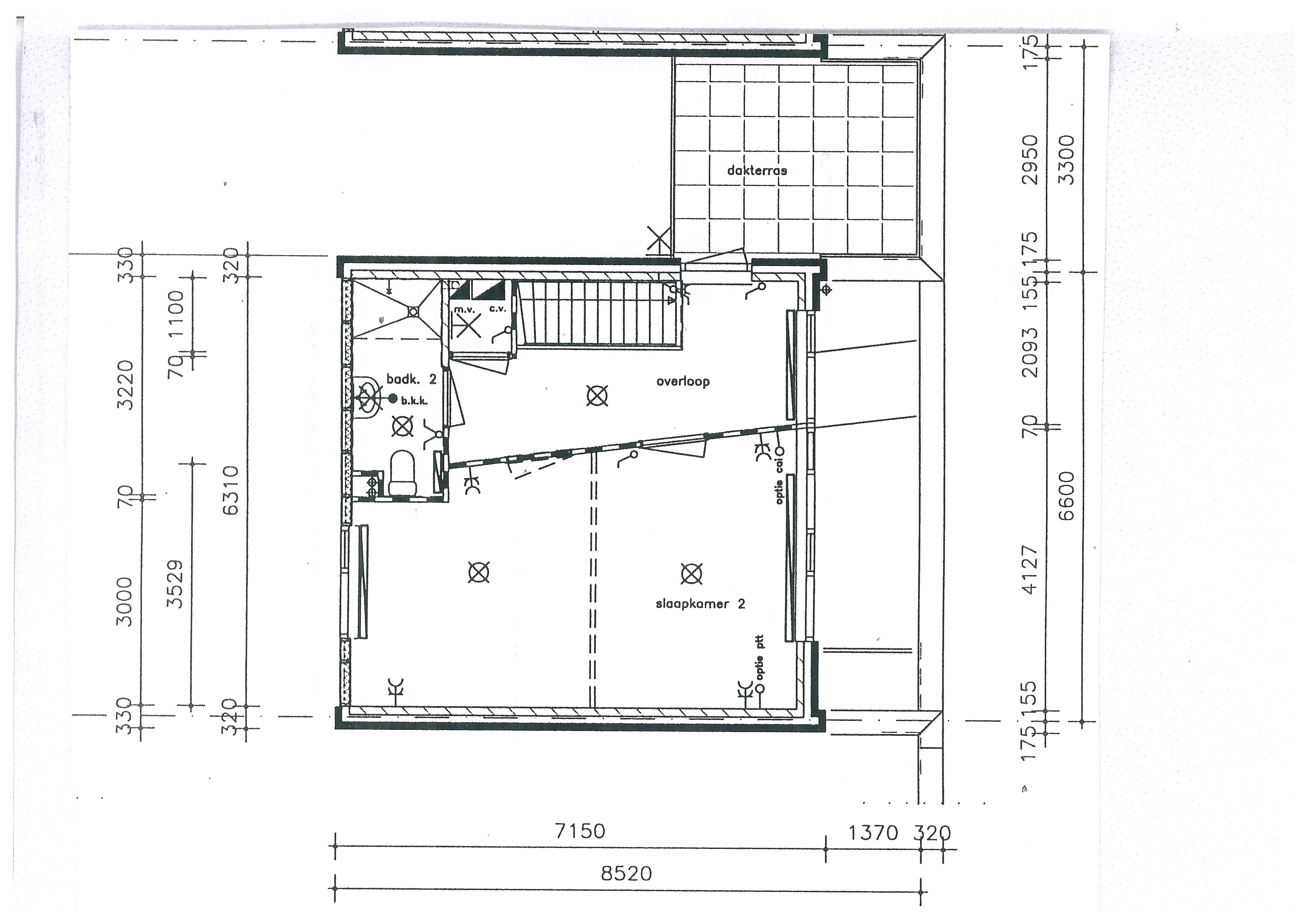 Bijgevoegd schets bestaande opbouw met de locatie van de muur van de buren, hiertussen komt de uitbreiding.