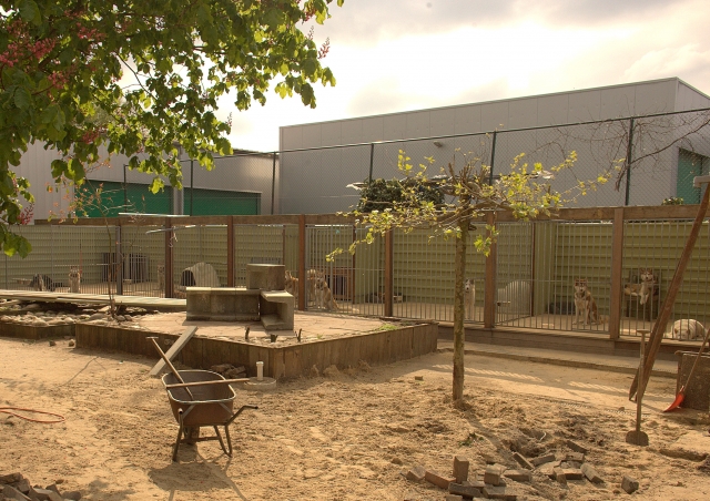 wij hebben een aantal honden kennels gebouwd bestaande uit kennelpanelen (traliewerk) en hierop een afdak geplaatst van golfplaten.