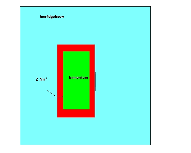 valt een binnentuin onder achtererfgebied in het kader van de wabo, en hoe loopt dan de 2,5 m? zone? kan dus zonder meer de binnentuin (vergunningvrij) verkleind worden (zie bijgevoegde schets)? bestemmingsplantechnische zijn er geen problemen.
