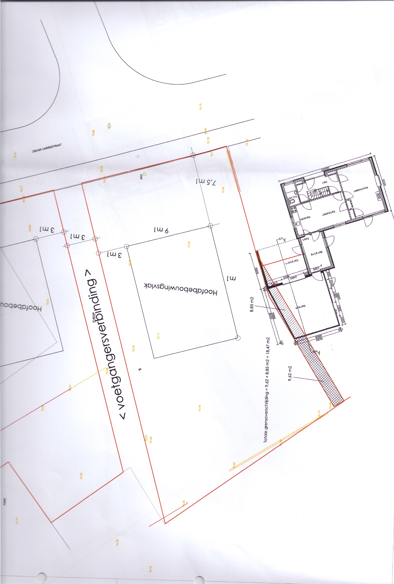 Want het is uiteraadt adsurt de grens er dan doorheen te trekken zonder gelijktijdig een erfdienstbaarheid vast te stellen bij een splitsing.