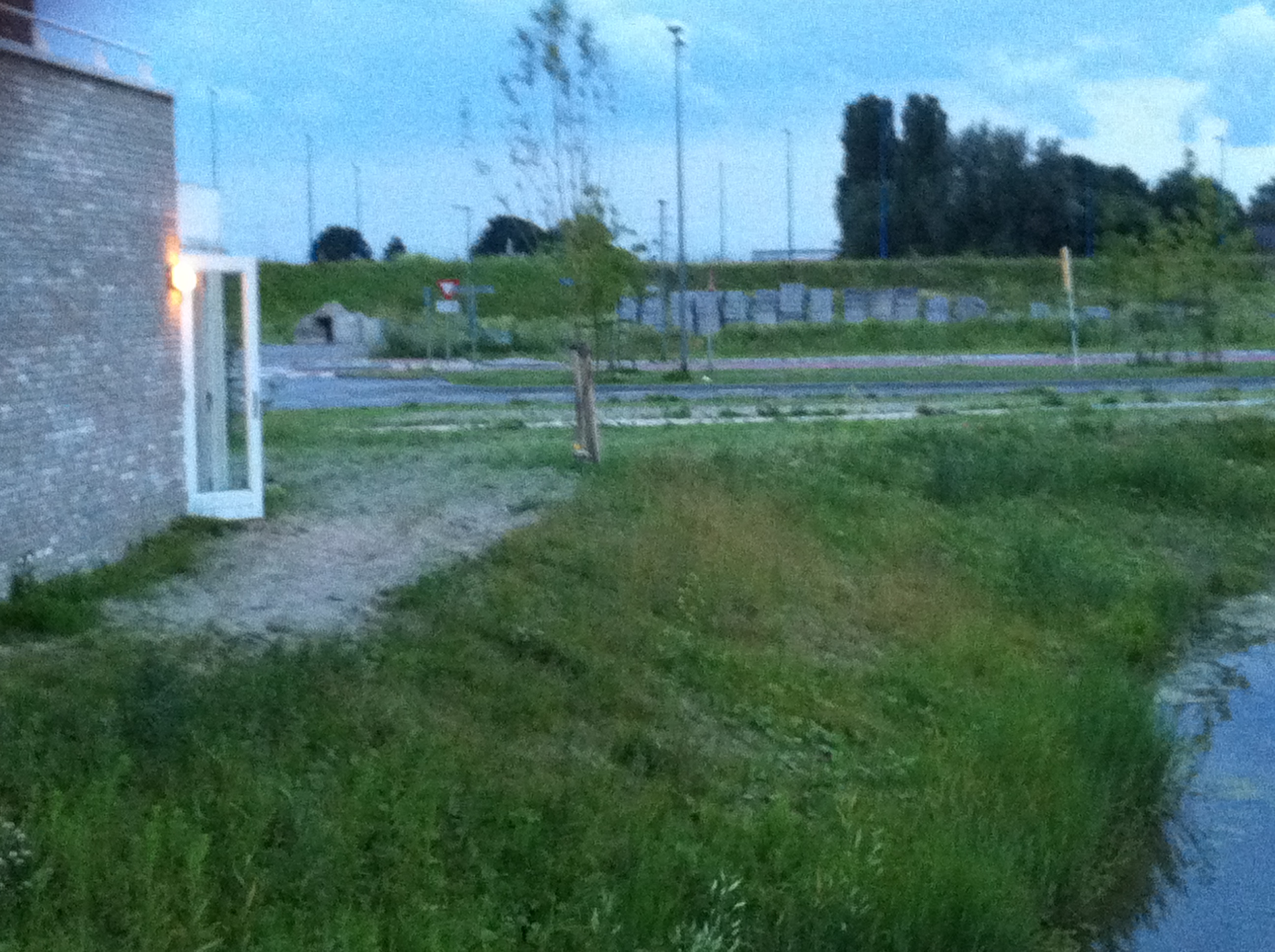 Zoals je nu op de foto kijkt lijkt het erop dat er een pad loopt maar door de droogte van de afgelopen weken is dat onkruid niet gaan groeien. In de zomer is dat 'pad' dus helemaal niet aanwezig en staat het onkruid tot je middel. Zelfs zo hoog en veel dat de deur bijna niet te openen is.