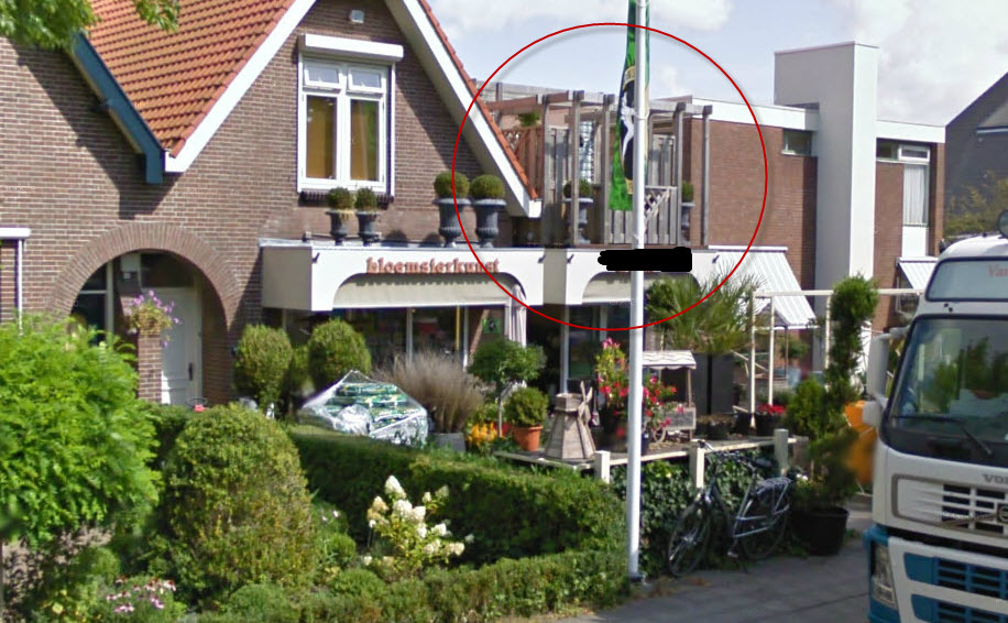 plaatselijke bloemist woont boven winkel en heeft 5 jaar geleden een dakterras aangekleed middels houten vlonderwerk en pergola-achtige houten opbouw. bloemist is alleen met dit bouwwerk tot boven zijn winkelluifel gegaan en dat is een 80cm te ver. op 1 juni 2007 schrijft de gemeente hierop de bloemist aan dat het eigenlijk tegen de regels is en ging onderzoeken of het bouwwerk toch te legaliseren valt. pas afgelopen 11 mei 2011 komt de gemeente hierop terug en dat ze het dossier wegens omstandigheden weer verder in behandling gingen nemen.