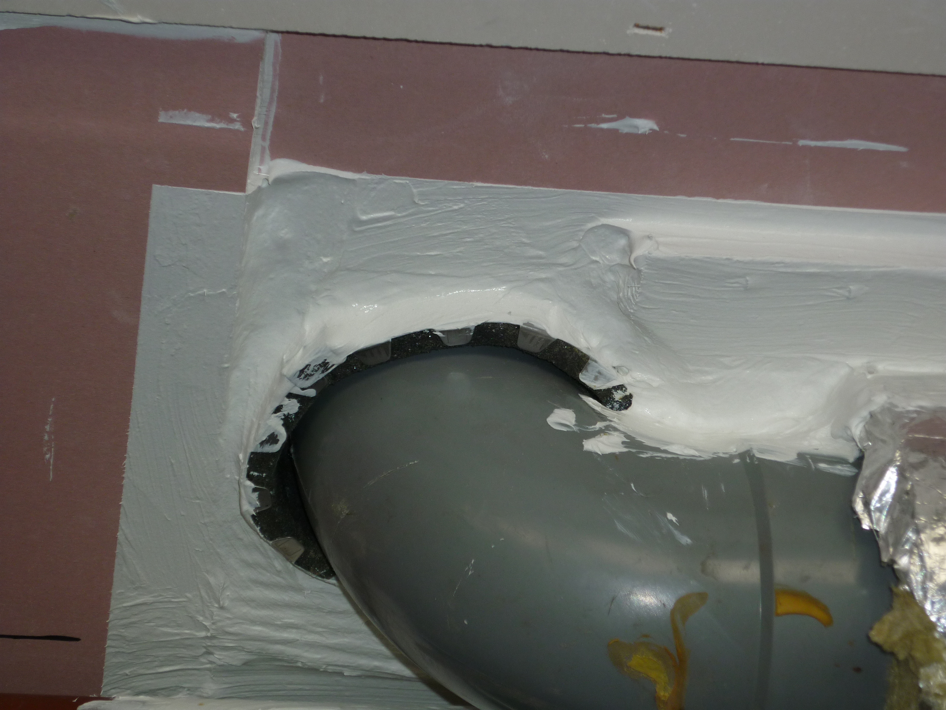 Het lijkt erop dat hier een brandvertragende sealing is aangebracht. Zorg ervoor dat een certificaat wordt aangeleverd dan weet je zeker dat dit goed aangebracht is.