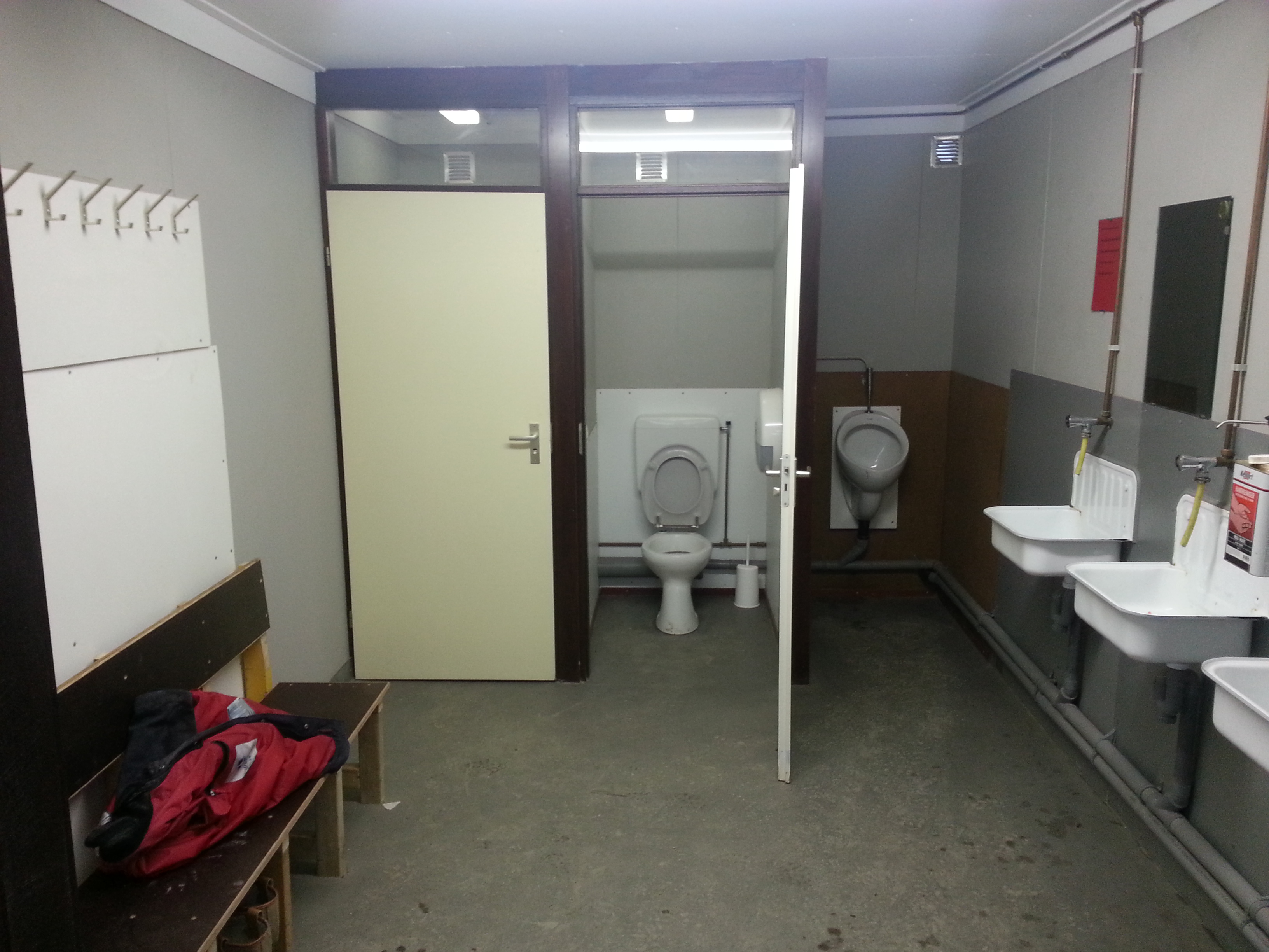 mag een kleedruimtes en sanitaire gedeelte in een keet