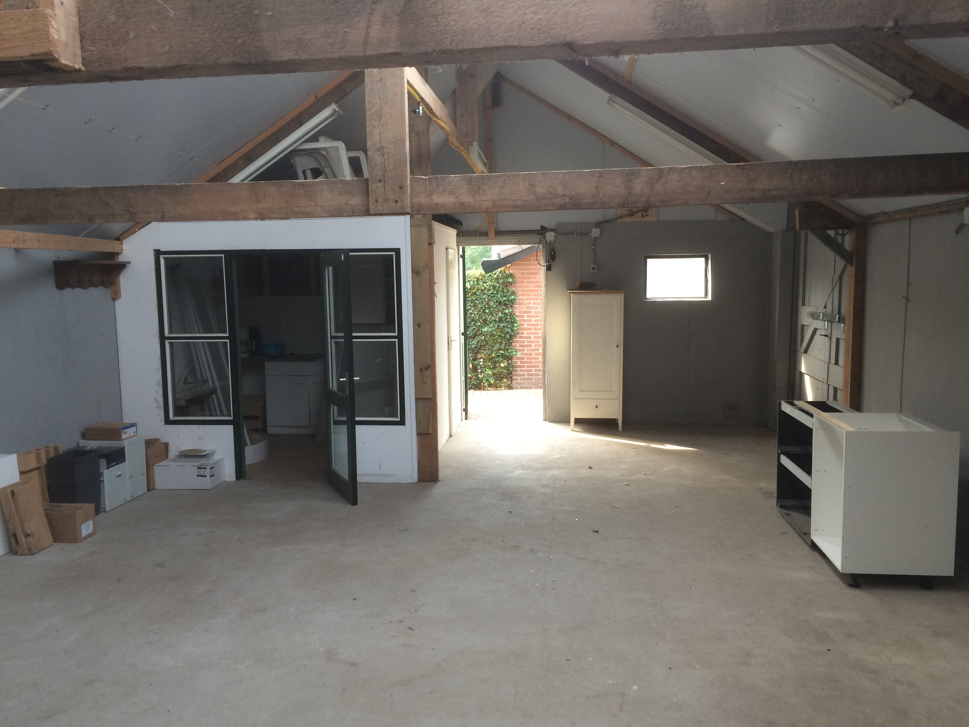 B) Stalen spantjes er in, waarbij de verbinding t.p.v. de goot momentvast is uitgevoerd. Qua uitvoering waarschijnlijk wat ingewikkelder, maar geeft wel de meeste vrijheid qua indeling c.q. het 'mooiste resultaat'.