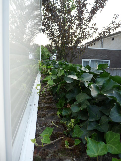 Toevallig pas nog een aflevering van de Rijdende Rechter gezien, soortgelijke situatie met klimop. Uiteindelijk is de eigenaar van de klimop daar gesommeerd om minimaal 2 keer per jaar te snoeien, klimop moest zelfs een zekere afstand houden van (in die kwestie) het boeiboord van de buurman. Dit alles op laste van een dwangsom. Nu zou ik het zelf niet zover willen laten komen, ga in gesprek met de buren en leg de situatie uit. In goed overleg bereik je doorgaans het beste resultaat.