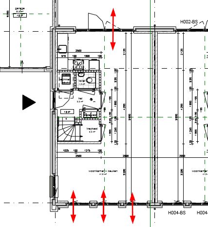 Als het verschil tussen de totale doorlaat per gevel erg groot is, dan kan ik me voorstellen dat je alle gevelopeningen bij elkaar optelt en rekent met luchtsnelheid v=0,1m/s (altijd nog gunstiger dan daadwerkelijk alle openingen in één gevel).
