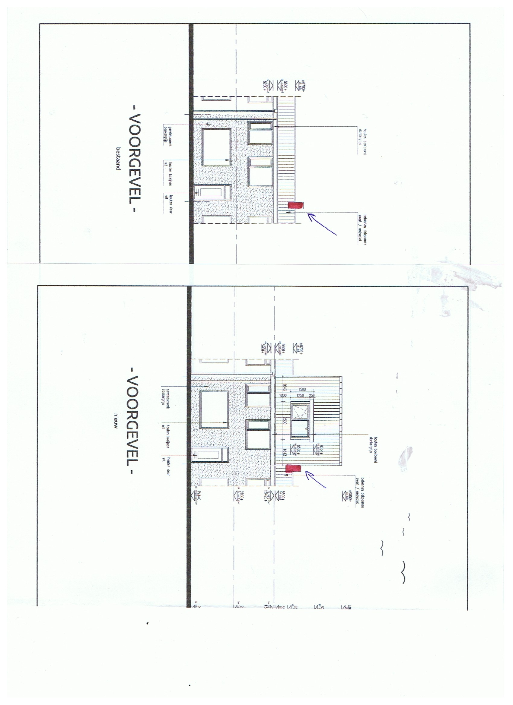 Bijgevoegd tekening oude/nieuwe situatie, rode blok is mijn schoorsteen.