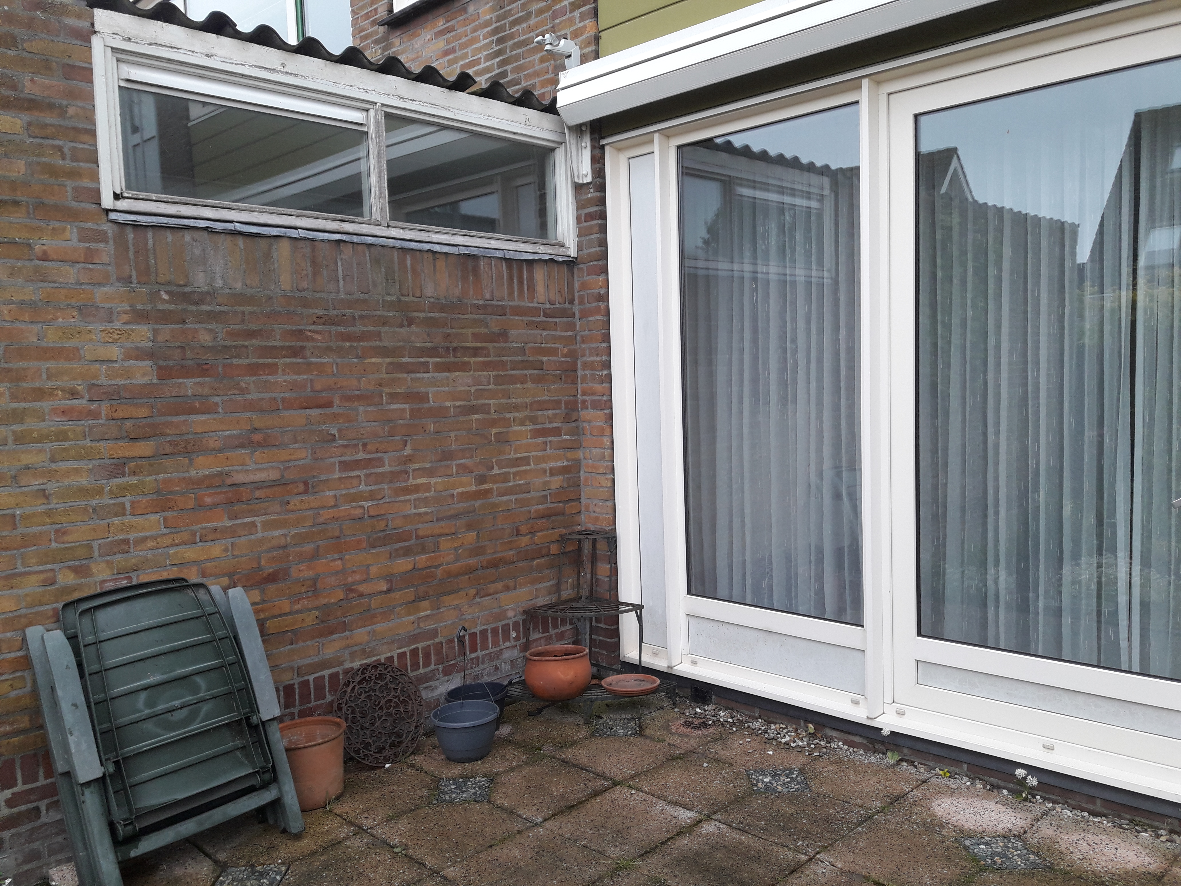 Dat bovenraam is onderdeel van aanpandige bijkeuken tussen de huurwoning en schuurtje en zit er nu 30 jaar.