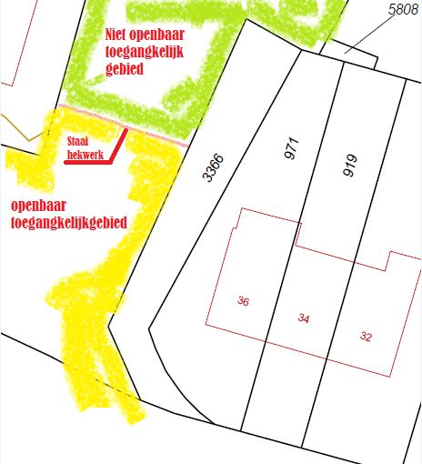 Perceel 3366 hoort bij de kavel? Of is dit een (openbare) weg?